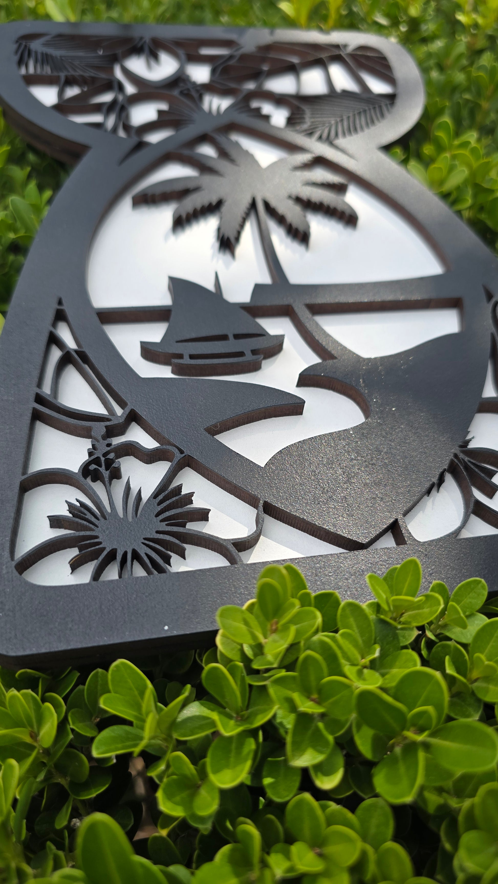 Bring a piece of the islands into your home with this handcrafted Latte Stone Wall Art, standing tall at 28 inches with a width of 18.5 inches. Inspired by the strength and beauty of Guam’s heritage, this piece features a bold outline of the iconic Latte Stone, filled with colorful island florals and a stunning Guam Seal scene in the center – complete with a traditional Guam seal and Island flowers.