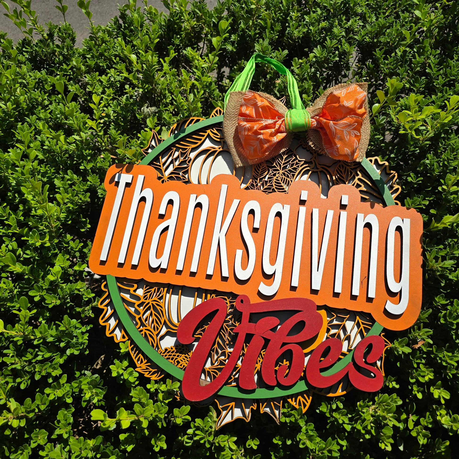 “Thanksgiving Vibes” Fall Wall Sign – Layered Holiday Décor with Autumn Charm